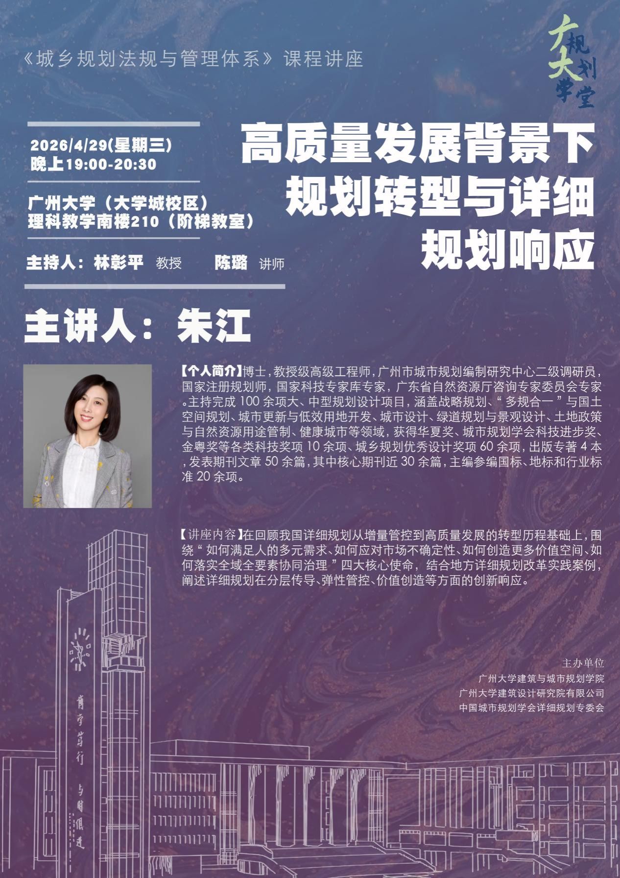 讲座预告 | 高质量发展背景下规划转型与详细规划响应;
