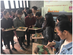 灰塑探索营最有意思的部分,就是“体验”!邵大师早早就为每一位参加活动的同学准备好一个灰塑的胚模,让同学们亲自上手,尝试为灰塑上色。邵大师手把手的教导同学们,同学们兴致盎然地认真描绘,课堂上有埋头绘制的身影,也有欢声笑语的交流,邵大师和同学们互动热烈,打成一片。经过认真的工作,每一位同学都画出了心目中最美的灰塑。邵大师告诉大家,这一件灰塑带回去后,静置一周时间,即可完成,作品可以存放百年不坏。同学们雀跃不已。